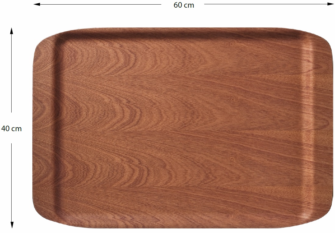 Zastrzegamy naturalną różnorodność barwy i usłojenia jednego gatunku drewna, występowanie drobnych, nielicznych pęknięć wierzchniej warstwy okleiny powstających w trakcie produkcji sklejki profilowanej, wykonanej z pięciu i więcej warstw okleiny drewna liściastego oraz tolerancję w wymiarach tac +/- 3 mm.